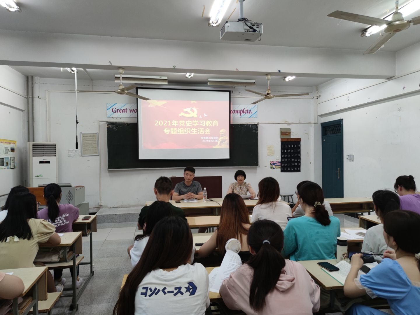 首先,支部书记朱莉对此次组织生活会的主题及目标作了说明,她代表党支部委员会向党员报告半年来党支部工作开展情况特别是开展党史学习教育情况,并代表党支部进行问题检视。接着,全体党员围绕主题和要求,进行对照检查,开展批评与自我批评。支部书记朱莉和辅导员王玉川带头谈学习习近平总书记在庆祝中国共产党成立100周年大会上的重要讲话的心得体会,学习习近平新时代中国特色社会主义思想和党中央指定学习材料情况及个人感悟,并检视问题、剖析原因、明确今后的努力方向和整改措施。随后,其他党员同志紧紧围绕“学史明理、学史增信,学史崇德,学史力行”这一目标,盘点收获,检视问题,深刻剖析。大家开诚布公,结合学习、生活、工作实际,直接提出批评建议,各位党员都直面问题,虚心接受所提建议和意见,并作表态发言,达到了互相促进、互相帮助、共同进步的目的。
